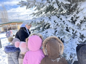 Воспитанники МБДОУ Детский сад №3 "Машар" с.Ведено на прогулке в февральский снежный день.