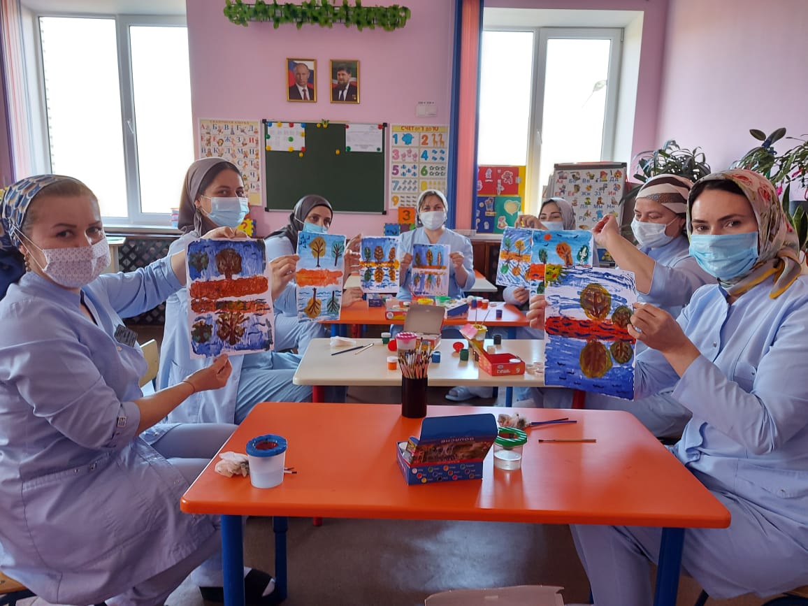 Заместитель заведующего по ВМЧ, Тепсуева А.З. провела мастер-класс по ознакомлению воспитателей с нетрадиционными техниками рисования.